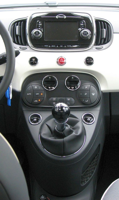 Prenova je prinesla tudi posodobitev bivalnega okolja v notranjosti potniškega prostora, kjer najdemo bolj udobne sedeže, spremenjeno podobo armaturne plošče in volanskega obroča ter še več sijoče kovine. Drugačna je tudi podoba glavnega kontrolnega inštrumenta, omenjajo pa tudi serijsko vgradnjo 5-palčnega (7-palčni je na voljo ob doplačilu) TFT zaslona sistema Uconnect™ na vrhu sredinske konzole, nova držala za pijačo ter premestitev 12-voltne vtičnice, drugače je oblikovan tudi predal pred sopotnikom. Italijani so ob tem posodobili tudi delovanje električno pomičnih bočnih oken in poskrbeli za izboljšano zvočno izolacijo (novi materiali na območju požarne stene ter nove obloge pod vsemi štirimi blatniki). Manj sprememb najdemo v prtljažniku, ki je po velikosti povsem enak prtljažniku legendarnega Zastavinega izdelka (yugo 45/55/65) ali pa prtljažniku, ki ga je ponujala prva generacija autobianchi/lancie Y10. Govorimo o 185 litrih osnovne prostornine, ki jih v primeru fiata 500 lahko povečate na 550 litrov, če zložite zadnja sedeža. Ostaja pa že znani nizek nakladalni prag, kar olajša dostop do prtljažnika.