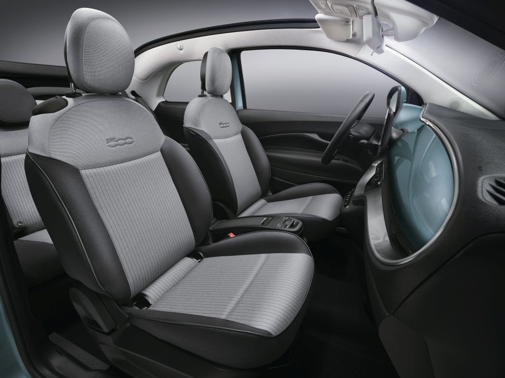 progastim vzorcem mélange spominjajo na italijansko visoko modo. Sedeži so na voljo v dveh barvnih različicah: temno sivi z logotipom 500 in detajli v bakreni barvi, ter svetlo sivi v kombinaciji z modrimi pikami ter srebrno-sivim logotipom 500.