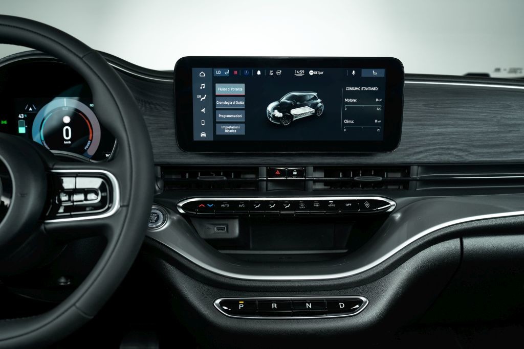 prepoznavanjem glasu, ki omogoča pogovor z vozilom z uporabo ključne besede »Hey Fiat«, za preverjanje dosega, nastavitve polnjenja baterije, nastavitev klimatske naprave in izbiranje glasbe.