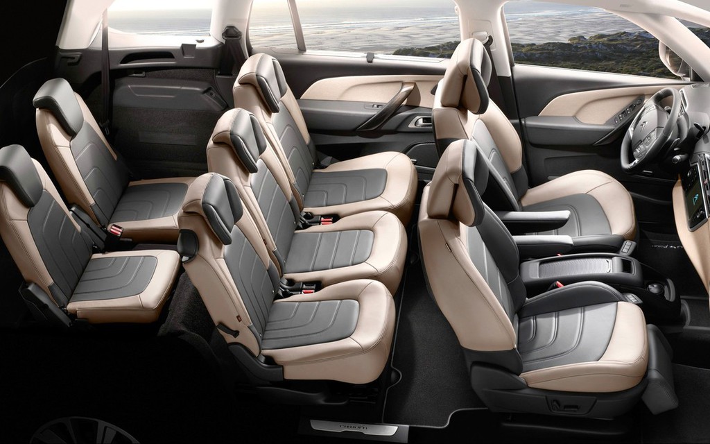 Eleganca in udobje prevladujeta z oblikovanjem, ki se navdihuje v svetu notranjega dizajna : na voljo je oblazinjenje iz usnja Nappa v dveh barvnih odtenkih v svetli kombinaciji, in usnjeno oblazinjenje Mistral.V novem CITROËNU GRAND C4 Picasso vsi potniki potujejo v prvem razredu, zahvaljujoč Paketu Lounge, ki je ekskluzivnost v tem segmentu, z masažnimi prednjimi sedeži in s sedežem Relax, ki omogoča sovozniku, da iztegne noge, za vse potnike pa so tu vzglavniki Relax za oporo vratu. In tudi kot v prvem razredu, potniki v 2. vrsti lahko uporabijo paket Multimédia « plug & play » za ogled najljubših filmov na 2 zaslonih, vgrajenih v prednje vzglavnike.