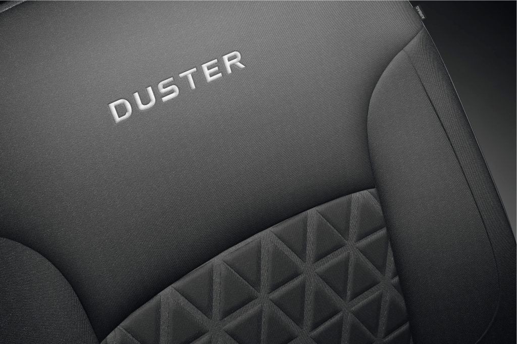 Armaturna plošča je popolnoma preoblikovana. Osrednjo konzolo obrobljata pokončna strukturna elementa, ki poudarjata čvrst značaj celote. Temnejše barve notranje opreme poudarjajo krepek značaj Dusterja in njegovo pripadnost svetu terencev. Za boljše udobje poskrbijo na novo oblikovani sedeži in okrepljen naslon zadnje sedežne klopi. Dacia Duster je na voljo s štirimi novimi vrstami prevlek vključno z usnjenimi. Novi Dacia Duster na zunaj in znotraj potrjuje svoj slog avtomobila za vsa