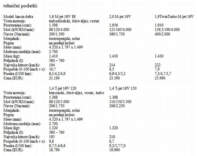 Bencinska agregata sta T-jet, prostornine 1,4 litra in ponujata 88 oz. 110 kW. Dizelsko družino začenja dva decilitra prostornejši agregat z 88 kW. Po moči mu sledi povsem nov dvolitrski M-jet s 121 kW, vrh pa zaseda 1,9 litrski agregat TwinTurbo z dvema turbinama in 139 kW moči. V začetku drugega leta se bo naštetim pridružil še 1,8-litrski turbobencinski agregat z okroglimi 200 'konjiči'. Na voljo so trije paketi opreme: Argonto, Oro in Platino. Že v osnovnem najdemo 6 zračnih blazin,