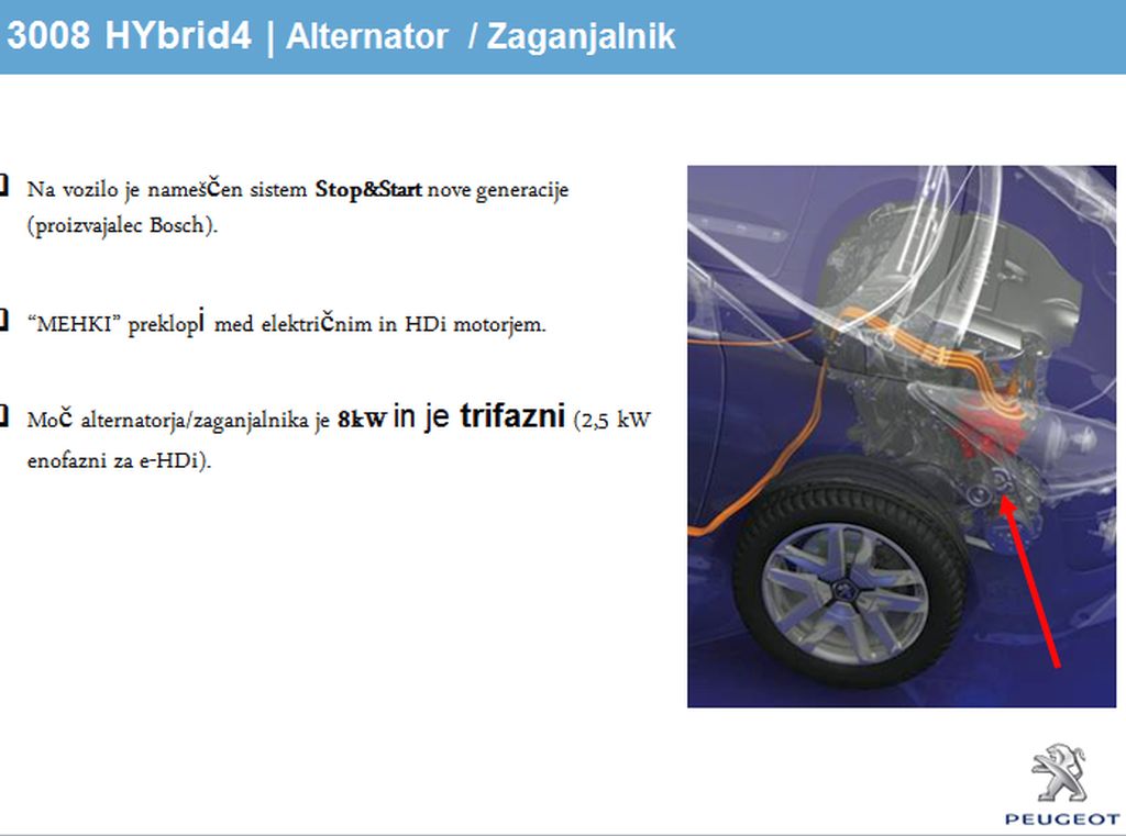 V letošnjem aprilu se bo na slovenskih cestah pojavil novi peugeot 3008 HYbrid 4, prvi serijski hibridni osebni avtomobil z vgrajenim dizelskim motorjem. V primeru novega serijskega hibrida gre za rezultat uspešnega skupnega sodelovanja med podjetji Peugeot, Bosch (električni motor) in Sanyo (Ni-MH baterije).