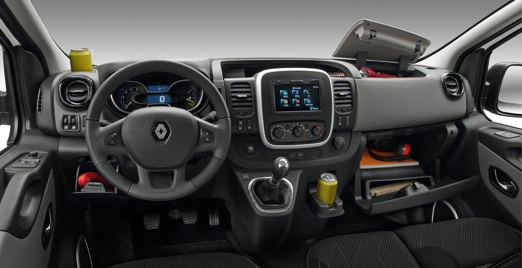 Kabina je domišljeno zasnovana, da lahko služi kot prava potujoča pisarna. V njej je najti niz domiselnih in priročnih pripomočkov, kot so držala za prenosni telefon, tablični in prenosni računalnik, zaradi katerih ima voznik te naprave vedno pri roki. Novi Trafic ponuja skupno za 90 litrov mest za odlaganje in shranjevanje, kar je največ na trgu in bistveno olajšuje vsakodnevne vožnje poklicnih uporabnikov.
