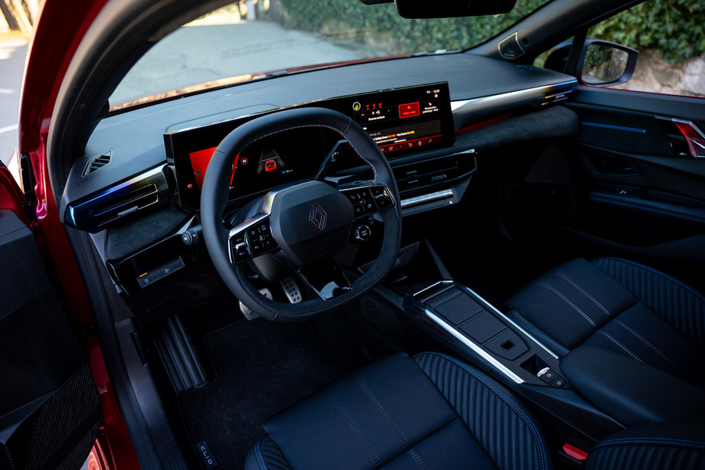 izbrati med 48 možnimi. V najboljšem paketu opreme esprit Alpine je namesto blaga uporabljena alkantara, okrasni oblogi na obeh straneh armaturne plošče pa sta »mavrično titanove«, kar spominja na izpušno cev dirkalnega avtomobila. Tako površino so dosegli z inovativno tehniko kromanja v barvnih odtenkih.
