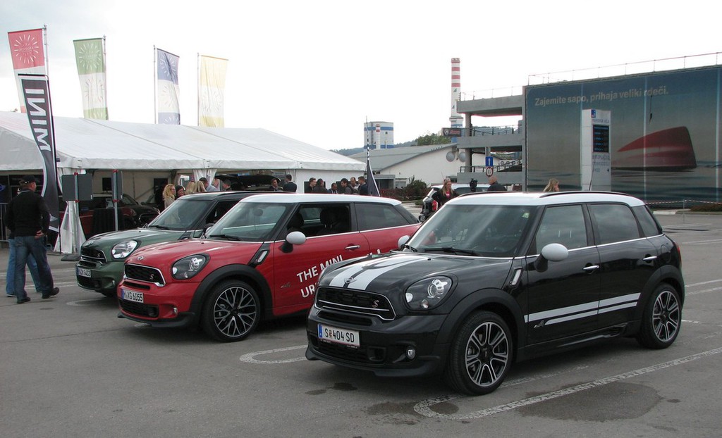Tokrat nove 5-vratne različice, ki bo primerljivo opremljena in motorizirana kot aktualni 3-vratni predstavniki modela mini, nismo mogli preizkusiti, ker bo ta naloga opravljena šele ob naslednji predstavitvi. Smo pa novinarji danes lahko preizkusili večino aktualne palete znamke MINI, čeprav so nas ob tem 'zadržali v kletki' (testiranje je potekalo na zaprtem območju vodnega mesta Atlantis v BTC), kjer smo lahko testirali predvsem manevrske sposobnosti aktualnih minijev, potrditev navedb o zmogljivostih avtomobilov pa v takšnih okoliščinah pač ni mogoče izvesti. Sam sem preizkusil 3-vratnega cooperja S. Sicer pa moje navedbe lahko preverite tudi sami, ker bodo na istem območju v BTC v teh dneh (9. in 10. oktober) potekale tudi testne vožnje za vse ljubitelje in potencialne kupce avtomobilov te znamke. Udeležba na testnih vožnjah je možna ob prijavi ter veljavnem vozniškem dovoljenju.