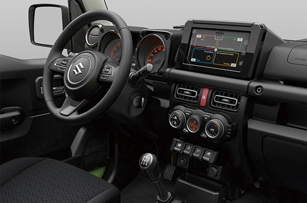 Kot resnično posebnost velja omeniti izbor posebnih karoserijskih barv, ki jih v tem primeru ni pogojevala trenutna moda, temveč zavedanje, da vam bo primerna barva karoserije (takšna, ki poudari vidnost avtomobila …) ob izletih po brezpotjih morda lahko rešila življenje, če boste kje obtičali, ker bo bolje vidna v slučajih ko boste morda potrebovali reševalce ali servisno osebje. Za lovce, gozdarje in vse ostale, ki bi se radi pritajili v naravi, obstaja odtenek zelene 'kamuflažne' (Jungle Green) barve. Zelo funkcionalno in pregledno je v novem jimnyju izraženo tudi oblikovanje notranjosti, ker lahko nekoliko večja stikala upravljate tudi v primerih, ko so vaše roke obute v par delovnih rokavic. Posledično je oblikovanje izvedeno v bolj enostavnih linijah, in to v spremstvu večje količine praktično naravnane plastike, ki se lahko pohvali z veliko odpornostjo na praske, udarce in ostale morebitne poškodbe ob delovanju v bolj surovih okoljih. Ob tem je tudi novi jimny opremljen z nekaterimi varnostnimi (Dual Sensor Brake Support (DSBS)) in razvedrilno-informativnimi pripomočki (7-palčni zaslon na dotik), ki jih lahko najdemo v ostalih aktualnih serijskih modelih znamke Suzuki.