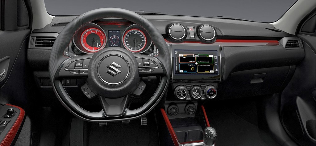 Celotni paket, ki bo britanskim kupcem na voljo za 17.999 britanskih funtov (nemška prodajna cena: 21.400 evrov) zaokrožuje nekoliko bolj agresivna podoba, vidna predvsem pri paru nekoliko spremenjenih odbijačev, v kombinaciji s 4-delnim setom 17-palčnih koles. Športna črnina tudi tokrat obvladuje predvsem notranjost potniške kabine, in to v kombinaciji z rdeče obarvanimi detajli, medtem ko ostaja stopnja opremljenosti primerljiva z ostalimi različicami modela swift.