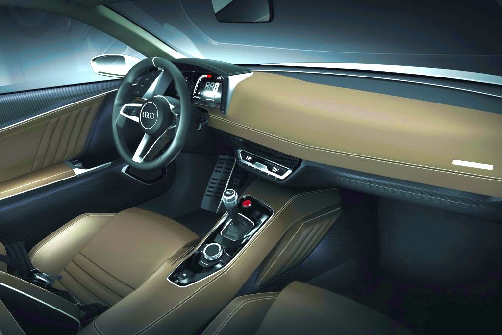 Tudi v notranjosti potniške kabine prevladuje bolj športno orientirana miselnost, ki prinaša manj udobja in opreme, čeprav je notranjost oblikovana elegantno. Tudi tukaj so nemški inženirji poskušali zmanjšati maso vgrajenih komponent, zato sta vgrajena športna sedeža izredno lahka (vsak ima 18-kilogramsko maso) in imata kar za 40 odstotkov manjšo maso kot serijski par športnih sedežev. V notranjosti potniške kabine najdemo oblikovno podobnost z originalom, ker so glavni kontrolni merilniki izvedeni v digitalni obliki, na levi in desni strani njihovega ohišja pa najdemo po štiri stikala, tako kot pri originalu iz leta 1984. Audijev quattro concept počiva na 20-palčnih platiščih s centralno matico in širino 9J, ki nudijo oporo 20-palčnim pnevmatikam dimenzij 275/30.