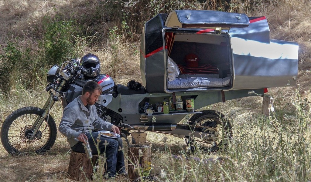 Iz ZDA prihaja novica o zanimivi ideji 26-letnega študenta arhitekture (Jeremy Carman), ki je z bivalnikom na motociklu združil strast do arhitekture, motociklov ter ekspedicijskih potovanj, ker se bo s tem prototipnim izdelkom v kratkem odpravil na zelo dolgo potovanje (približno 32.000 kilometrov), kjer bo prepotoval Južno Ameriko in se na koncu vrnil v rodno Kalifornijo.