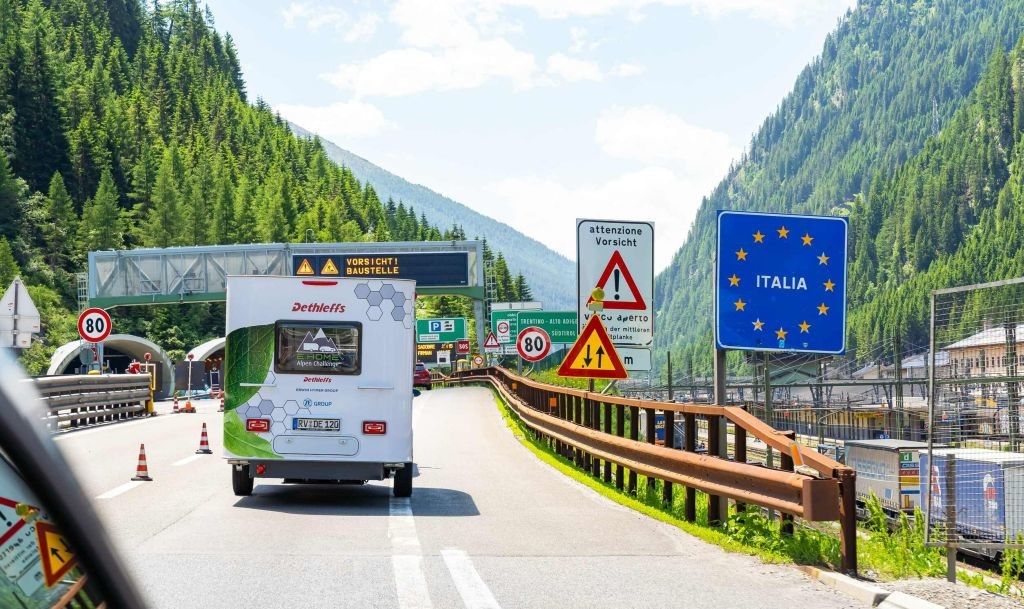 Pri približno 235. prevoženih kilometrih so razkrili še eno skrivnost uspeha, ker so povedali, da so se celotno pot vozili brez prižgane klimatske naprave, in to precej po polžje (največja hitrost na avtocestah: 80 km/h). Pri približno 254 prevoženih kilometrih so se že spuščali proti Italiji. Ob tem jim je veselje pokvaril močan čelni veter, ki je posledično izničil vse nemške upe o zajetno odmerjeni rekuperaciji električne energije ob vožnji po klancu navzdol. Pri 355 prevoženih kilometrih je bil psihološki pritisk na voznike te naveze (audi e-tron 55 sportback & dethleffs e.home coco) že tako močan, da je potovalna hitrost nemškega 'električnega cestnega vlakca' upadla na povprečnih, vendar zelo varnih (za potnike in ostale udeležence v prometu …) 62 km/h. Približno 5 kilometrov pred ciljem (Riva del Garda) so si Nemci lahko oddahnili, ker je je v akumulatorjih obeh vozil ostalo še dovolj 'soka' (19 % v audiju in 22 % v prikolici) za dosego cilja, ki so ga dosegli po natanko 384 prevoženih kilometrih. Ob tem so hitro izračunali tudi povprečno porabo vlečnega vozila (77 kWh) in prikolice (73 kWh).