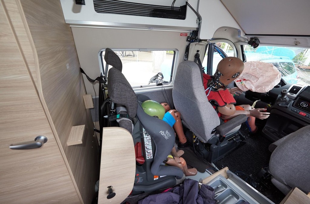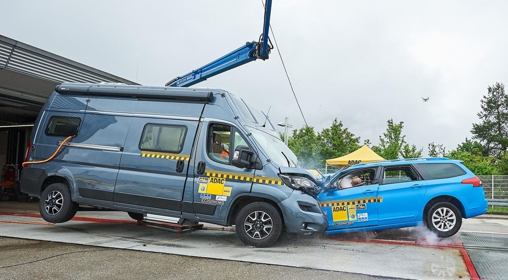 V zadnjih devetih letih so nemški statistiki opazili skokovito (+ 77 %) rast prodaje počitniških vozil na nemškem tržišču, kjer kupci favorizirajo predvsem avtodome, ki so zasnovani na osnovi serijskih kombijev različnih znamk. Zato so strokovnjaki kluba ADAC za tokrat izvedeno čelno poskusno trčenje uporabili nekoliko drugačen scenarij.