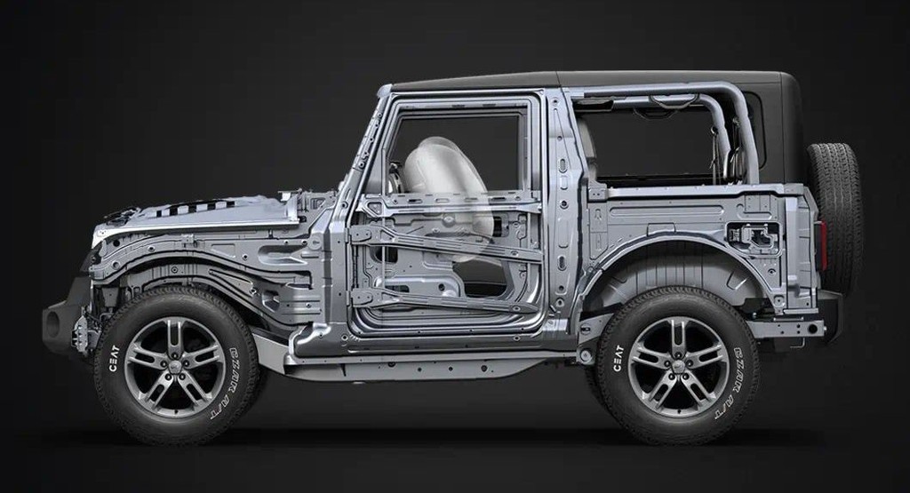 Oba pogonska sklopa sta serijsko spojena z ročnim 6-stopenjskim menjalnikom, ob doplačilu si bo kupec lahko omislil tudi 6-stopenjski samodejni menjalnik. Ker gre v primeru modela thar za pošteno terensko vozilo, je temu primerno izvedena tudi njegova zasnova (vozna šasija z nanjo poveznjeno karoserijo) ob povezavi s priklopljivim 4x4 pogonom, reduktorjem in zaporo diferenciala na zadnji osi, na krovu pa lahko najdete tudi sisteme kot sta ABS, ESP in EBD ter elektronsko pomoč za vožnjo po klancih. Sprednji kolesni par je obešen posamično, zadaj se nahaja večvodilna prema. Terensko orientirani kupci modela thar si bodo ob nakupu tega avtomobila omislili komplet jeklenih 16-palčnih platišč s pnevmatikami v dimenzijah 245/75 R16 (razmak med karoserijo in vozno podlago: 219 mm), kupci bolje opremljene verzije bodo dobili 18 palčne pnevmatike v dimenzijah 255/65 R18 (razmak med karoserijo in vozno podlago: 226 mm) na lahkih platiščih. V vsakem slučaju pa bodo s takšnim vozilom lahko prečkali tudi vodne ovire, ki niso globje od 65 centimetrov. Prav nič 'indijsko' ne deluje tudi oblikovanje in oprema v notranjosti potniške kabine, ker je thar lahko opremljen tudi s komfortno in varnostno opremo, ki jo cenimo tudi Evropejci.
