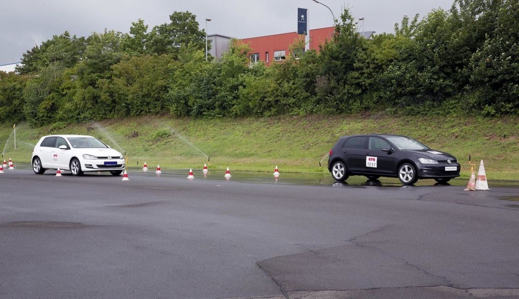 Omenjena azijska izdelka sta neprepričljiva tudi na testu vodljivosti in oprijema, ki so ga Nemci izvedli na krožni mokri stezi. Vozilo, obuto v celoletne pnevmatike znamke Goodyear je prevozilo en krog na stezi v času 85,9 sekunde. S tajvansko letno pnevmatiko je testni voznik potreboval 99,7 sekunde, malenkostno boljša je bila kitajska zimska pnevmatika (96,8 sekunde).