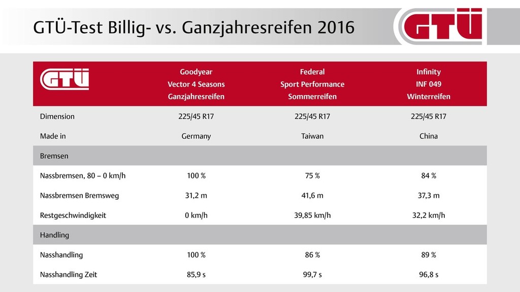 Ker so tudi številni Nemci in Nemke zelo dovzetni za varčevanje ob nakupu pnevmatik, ki jih prej ali slej privede tudi do lovk ponudnikov azijskih nizkocenovnih znamk pnevmatik, so pri nemški organizaciji GTÜ (Gesellschaft für Technische Überwachung) v teh dneh sprožili alarm, ker bo večje število neprimerno obutih avtomobilov na nemških cestah lahko povečalo možnost nastanka prometnih nesreč.