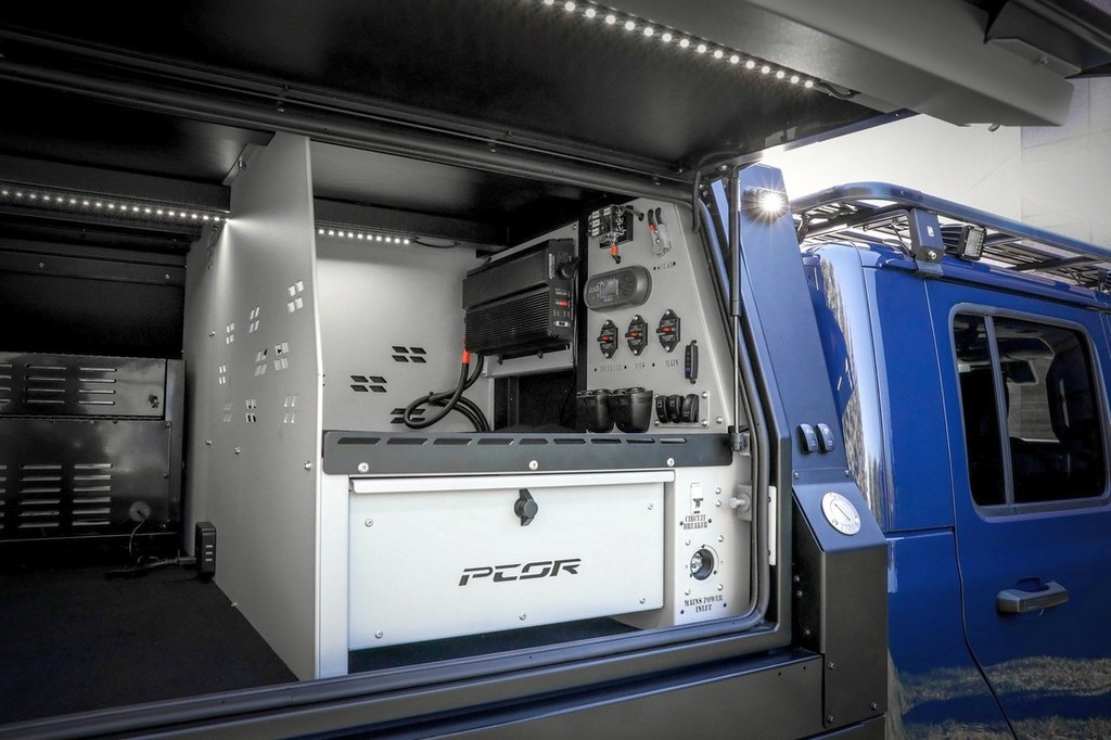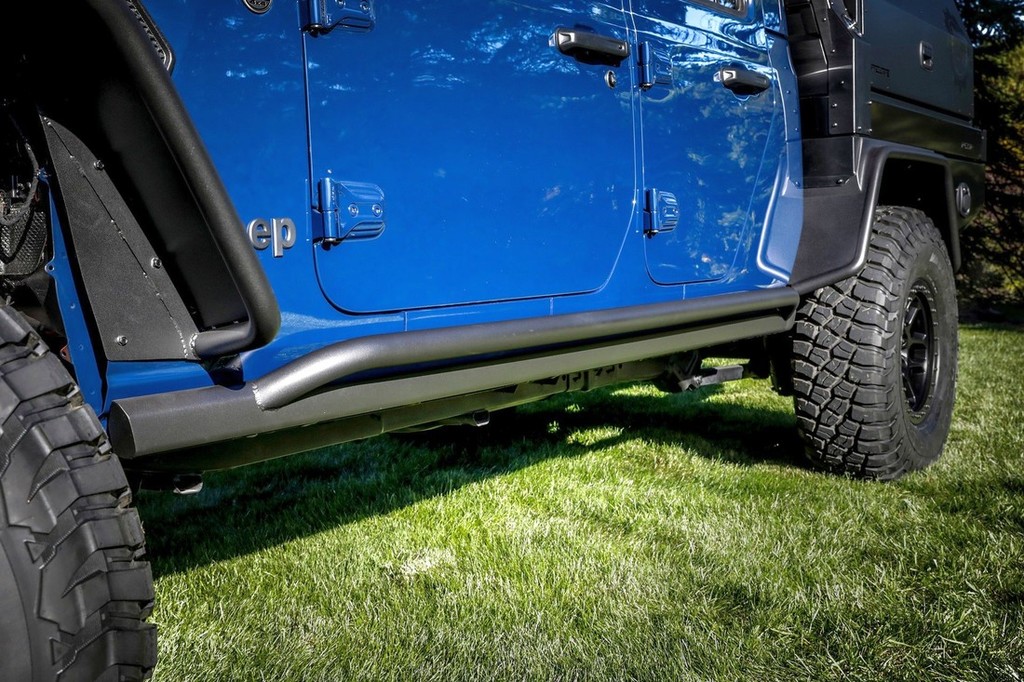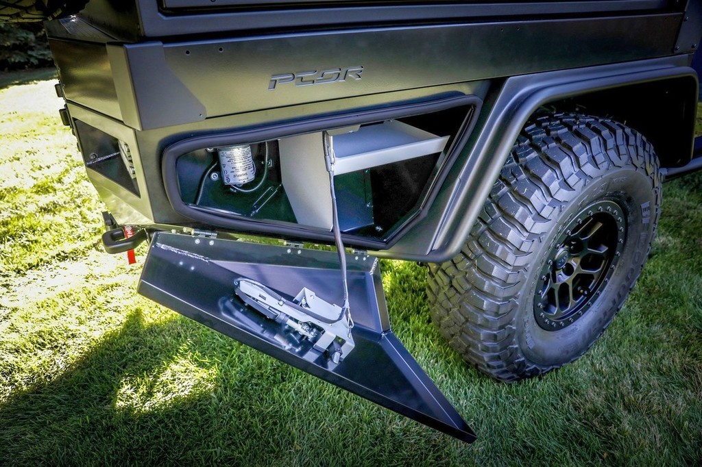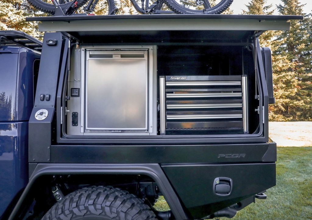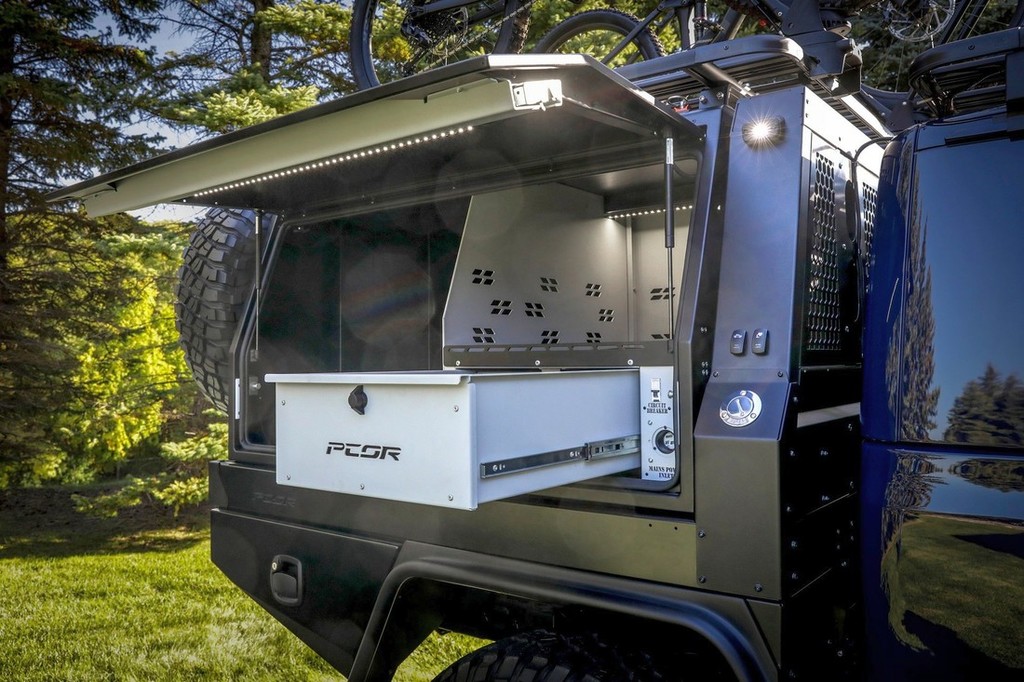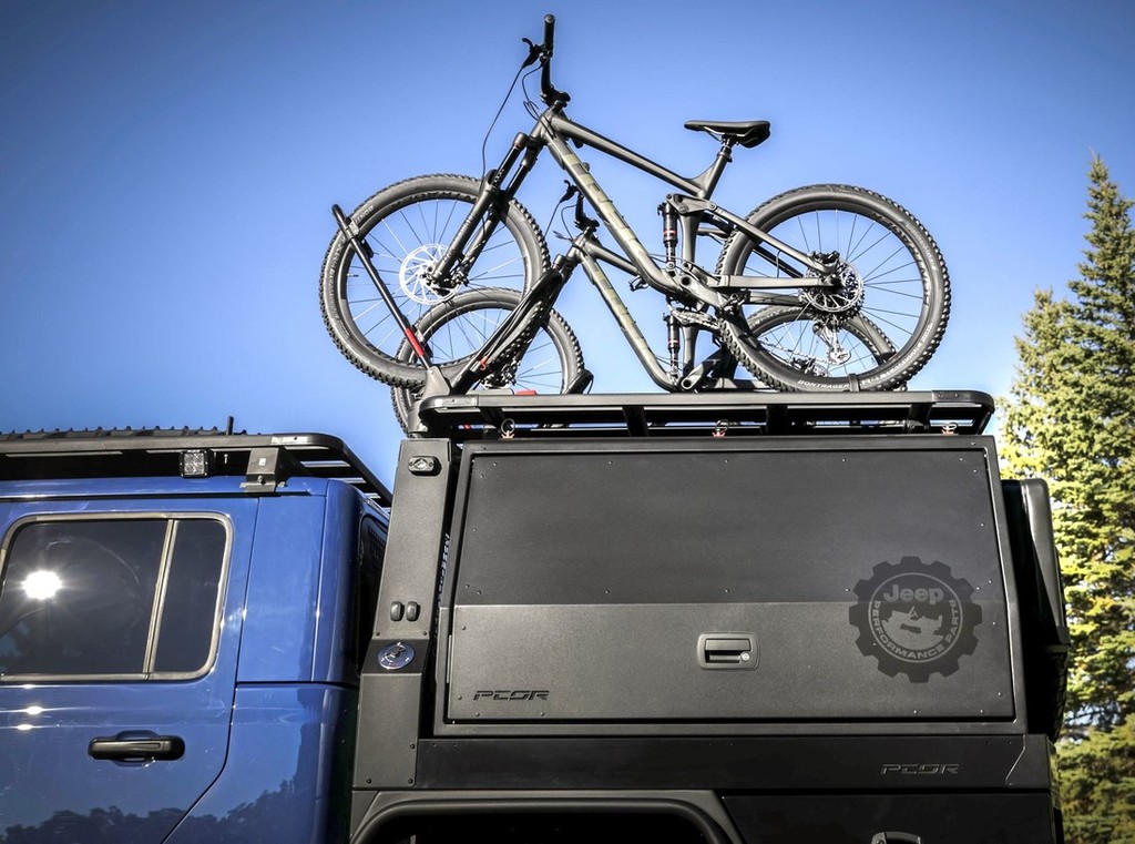 Za osnovo njihovega gorsko kolesarskega projekta so Američani uporabili serijski primerek jeepa gladiator, ki so mu ob preobrazbi v še bolj praktično terensko vozilo odstranili serijsko vgrajen 'keson' (prostor za prevoz tovora), ker so ga nadomestili z lahkim 'cargo' sistemom proizvajalca PCOR. V njem se lahko na sopotnikovi strani skriva več predalov s potrebščinami za kolesarje, medtem ko se na voznikovi strani skrivata električno gnan hladilnik ter tudi enako delujoč žar. Transportne potrebe gorskih kolesarjev pa lahko zadovoljita tudi dva strešna prtljažnika za prevoz koles in dodatne opreme ali zalog.