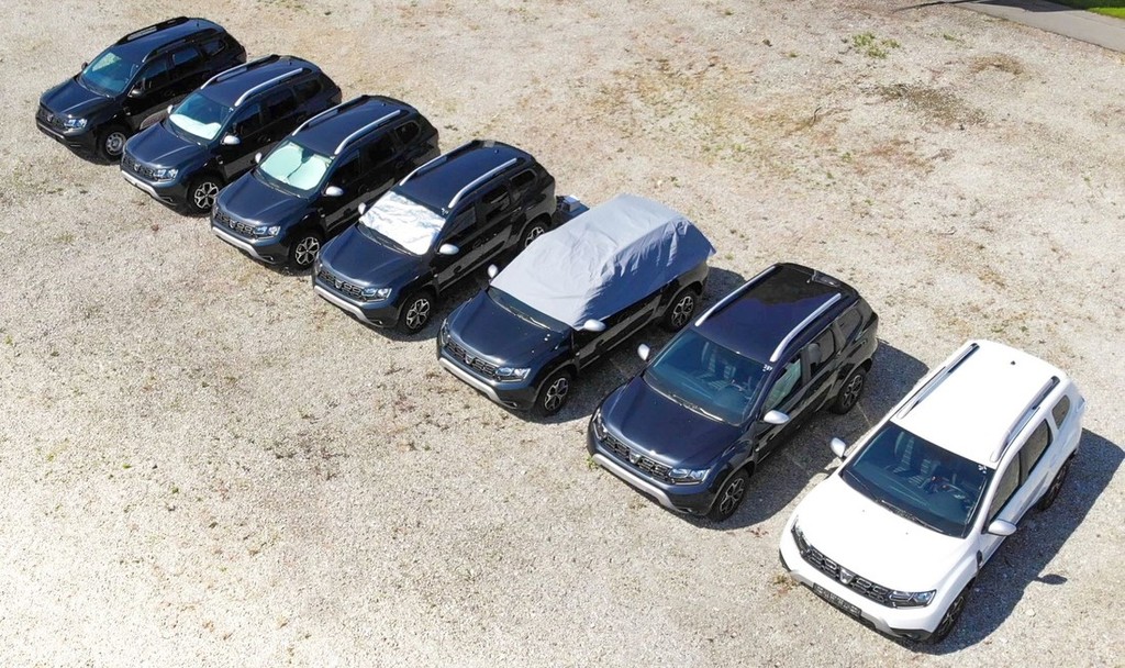 Ko so Nemci po približno štirih urah izmerili temperaturo barvnega laka pri črno obarvanem dusterju, so ugotovili, da so se zunanje površine karoserije ob tem segrele na približno 65 stopinj Celzija, medtem ko se je barvni lak pri belo obarvanem dusterju v enakih pogojih segrel samo na 44 stopinj Celzija. Je imela ta temperaturna razlika vpliv na temperaturo potniške kabine? Seveda, ob tem govorimo o približno petih stopinjah Celzija razlike, ker se je notranjost črno obarvanega avtomobila ob tem segrela na 53 stopinj Celzija, pri belo obarvanem vozilu so v notranjosti potniške kabine izmerili 48 stopinj Celzija. Še večja pa je temperaturna razlika med najbolje pred soncem zaščitenim vozilom in popolnoma nezaščitenim vozilom. Najboljšo zaščito pred vročino ob parkiranju vam lahko zagotovi samo delna ponjava, ki ob tem prekriva celotno streho in vsa kabinska stekla.