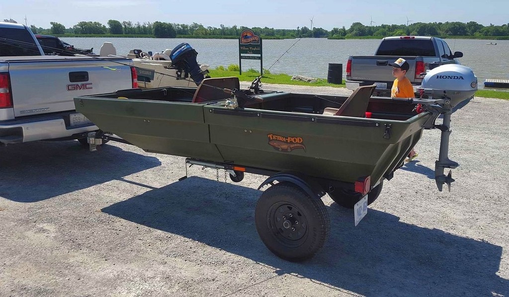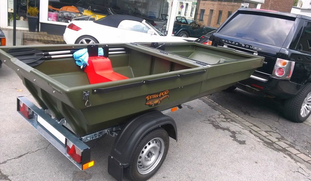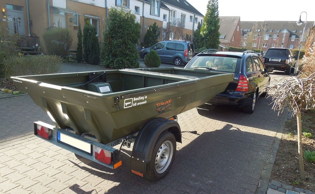 Ko prvič zagledate 'Tetra-Pod' si težko predstavljate, kako praktičen je lahko ta 'kompostni zabojnik na kolesih', ker sama zasnova priklopnika ne daje vtisa, da je pred vami lahko (masa: 104 kg) in nepotopljivo (navedba proizvajalca) vodno plovilo, ki je izdelano iz najbolj razširjene in dostopne plastike (polietilen) na tem planetu. Skrivnost je razkrita šele ob pogledu na vzdolžno premični ojé (drog na sprednjem delu prikolice), ki v iztegnjenem stanju omogoči preklop zgornjega dela tovornega prostora in njegovo poravnavo s spodnjim delom tovornega prostora.