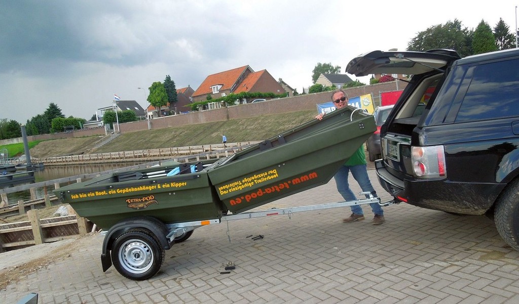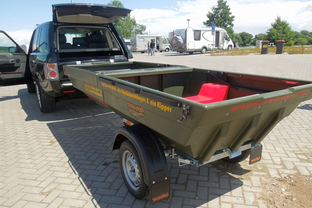 Na ta način se tovorna prikolica lahko hitro spremeni v dvoprekatno vodno plovilo (dolžina: 330 cm, širina: 138 cm) z nizkim ugrezom (0,6 m), kjer moč nameščenega pogonskega sklopa (izvenkrmni motor) ne sme presegati 7,5 kW (približno 10 KM). Na takšno plovilo lahko naložite največ 372 kilogramov 'živega in neživega' tovora. Po navedbi proizvajalca je takšno plovilo možno uporabljati tudi v Evropi, ker so pridobili vse potrebne certifikate. Zelo mamljiva je tudi prodajna cena, ker boste za takšno praktično 'crossover' prikolico odšteli samo 3.299 evrov. V to nemško prodajno ceno so že vračunani tudi transportni stroški.