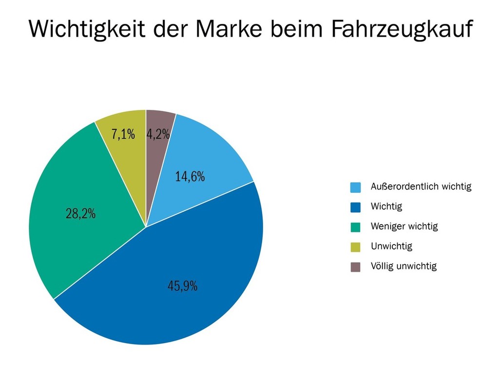 V tej raziskavi, kjer je sodelovalo približno 20.000 nemških lastnikov in lastnic avtomobilov, so ugotovili, da je za večino vprašanih (60 %, povprečna starost sodelujočih: 44,4 let) ime avtomobilske znamke ob nakupu novega ali pa rabljenega avtomobila zelo pomembno, in to ne glede na spol kupcev. K nakupu vozil tako imenovanih premium znamk se nagibajo predvsem moški, ki so starejši od 60 let (67 % izmed vseh vprašanih), pri mlajših lastnikih (do 29 let) je ime avtomobilske znamke manj pomembno. Tako razmišlja 58 odstotkov mladih Nemcem in Nemk, ki so trenutno lastniki avtomobilov.