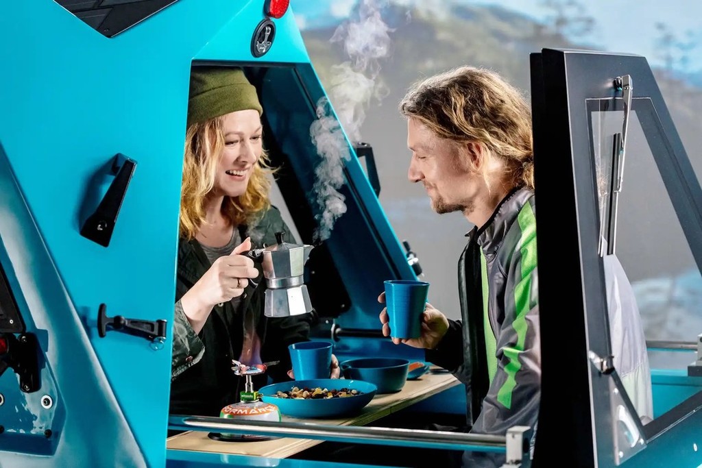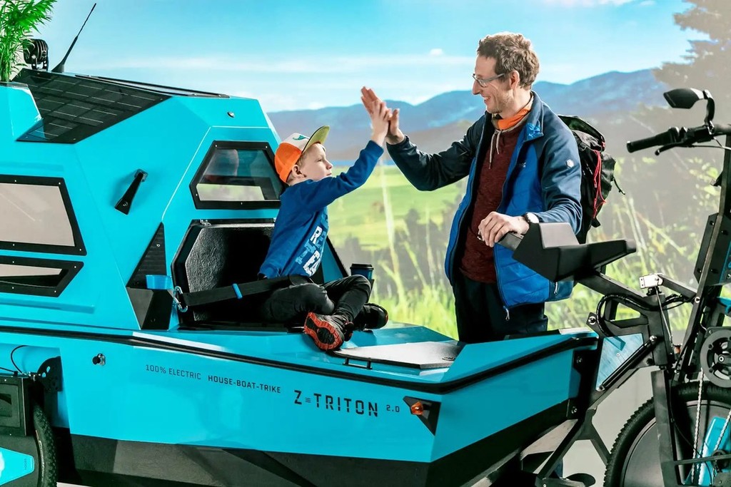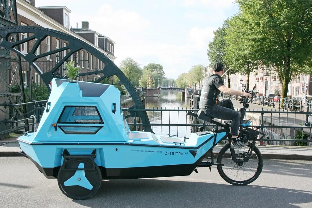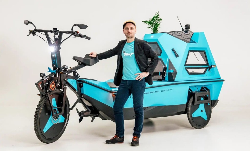Na tem epskem potovanju je mladi Latvijec že kmalu ugotovil, da običajni bicikel ni ravno najbolj primerno transportno sredstvo za premagovanje ogromnih razdalj, predvsem zaradi tega, ker z njim ni mogel svobodno prečkati globokih vodnih ovir, poleg tega je ob tem pogrešal tudi odsotnost primernega bivališča ob postankih na poti. Zato se je že leta 2017 pričel ukvarjati z idejo o rahlo bizarnem 'oblikovnem križancu', ker je v enem vozilu združil tri različne filozofije. Tako se je že leta 2019 pojavil prvi vozni prototip tega nenavadnega, vendar zelo ekološko usmerjenega 3-kolesnika, ki uradno spada v kategorijo električnih mopedov (L2e), čeprav se lahko hitro spremeni v plavajoči 'avtodom' za dve osebi.
