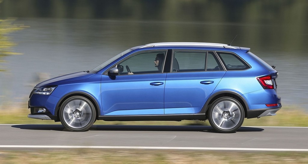 Fabia combi scoutline bo ponovno navdušila predvsem modno orientirane kupce, ki cenijo terensko orientiran izgled tega priljubljenega 5-vratnega kompaktnega karavana, čeprav fabia combi scoutline v resnici ne želi biti SUV (terensko prehodno vozilo za delo, šport in prosti čas), ker nima povečanega razmika med karoserijo in vozno podlago, niti ne bo na voljo v različici s 4x4 pogonom. Najbolj markantni zunanji oblikovalski elementi pri takšni fabii so vidni v obliki plastičnih zaščitnih elementov na sprednjem in zadnjem odbijaču, ker poudarjajo nekoliko bolj robustno zasnovo tega avtomobila. Ti deli so črni, medtem ko sta integrirana ščitnika podvozja spredaj in zadaj izvedena v zrcalno srebrni barvi, ki dominira tudi pri obeh ohišjih zunanjih bočnih ogledal ter pri nameščenem paru strešnih sani. Ob straneh so kolesna ohišja in stranska pragova zaščiteni s črnimi plastičnimi obrobami. Podobo različice fabia combi scoutline zaokrožuje set nameščenih 17-palčnih koles s platišči (model Braga) iz lahkih kovin.