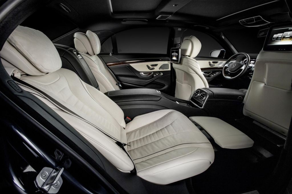 Povsem na novo je preoblikovana notranjost razkošno odmerjene in opremljene potniške kabine, kjer potnike pričaka uveljavljena nemška jet-set atmosfera, ki so jo Nemci tokrat nadgradili s parom 12,3-palčnih TFT ekranov (razmerje 8:3) ter samodejno osvežitvijo zraka (zapuščina znamke Maybach), ker bo vgrajeni sistem zasipal potnike s prijetnimi vonjavami. Eden izmed obeh vgrajenih ekranov je namenjen izključno vozniku, drugi, ki bo premogel več različnih informacijskih vsebin pa je namenjen tudi potnikom. Ker gre v primeru novega razreda S za prestižno reprezentančno vozilo, so Nemci namenili veliko pozornosti ljudem, ki bodo sedeli zadaj. Kupec bo lahko izbiral med petimi različnimi sedežnimi konfiguracijami v zadku potniške kabine, poleg tega so poskrbeli za nadgradnjo že obstoječih funkcij. Posebno pozornost so Nemci namenili tudi uživanju 'duševne hrane', ker bo za to poskrbel vgrajeni zvočni sistem nemške 'High-End' znamke Burmester. Čeprav so Nemci že začeli sprejemati naročila kupcev, bodo prvi primerki dobavljivi šele v zadnjem četrtletju leta 2013. V Nemčiji bo kupec za osnovno opremljeno in osnovno motorizirano odštel približno 80.000 evrov.