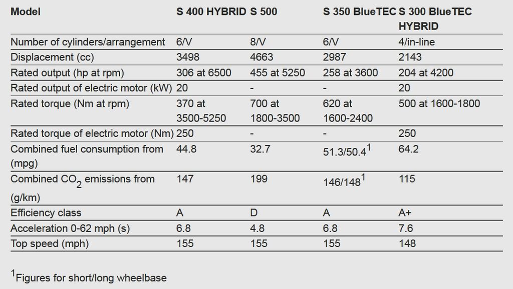 Kot zanimivost moram omeniti še en podatek, ker je limuzina (dolžina: 5246 mm, širina: 1899 mm, višina: 1491 mm, medosna razdalja (SWB): 3165 (3035) mm, prostornina prtljažnika: 530 litrov, masa avtomobila: 1945 kg (S 400 HYBRID), 1975 kg (S 350 BlueTEC), 2015 kg (S 500), obračalni krog: 12,3 metra, platišča (S 500): 8.0 J x 17 (8.0 J x 18), pnevmatike (S 500): 245/55 R 17 W (245/50 R 18 W)) iz novega razreda S že ob rojstvu prejela nalogo, da ustreže najbolj zahtevnim kupcem, ki si po navadi želijo klasične limuzine s podaljšano medosno razdaljo (LWB). To je povsem nova praksa, ker so 'SWB' različice po navadi povsem običajen del ponudbe, 'LWB' različice pa predstavljajo raritete. Zato bodo potniki v novi prestižni limuzini deležni še več udobja, ker so jim Nemci povečali 'Lebensraum', to pa je lastnost, ki je bila Nemcem vedno zelo pri srcu, vsaj če sodimo po dveh izgubljenih svetovnih vojnah, ki sta v bistvu posledici iskanja zadostnega 'življenjskega prostora'. Tako bosta prednja potnika deležna dodatnih dvanajstih milimetrov pri odmeri prostora za glavi, dodatnih štirinajstih milimetrov prostora v višini ramen ter dodatnih desetih milimetrov prostora v višini kolen. Tega, rahlo povečanega udobja bodo deležni tudi zadnji potniki (dva ali trije, odvisno od sedežne konfiguracije), ker bodo imeli 14 milimetrov več prostora za kolena ter dodatnih 9 milimetrov prostora v višini ramen.