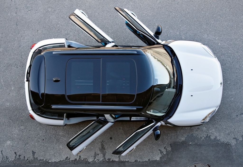 V primeru običajnih serijskih izvedb bosta gnani le sprednji kolesi, ob doplačilu pa bodo kupcem ponudili tudi stalni štirikolesni pogon ALL4, ki deluje po zaslugi vgrajenega elektrohidravličnega diferenciala, ki ob običajnih pogojih dovaja do zadnjega kolesnega para le 50 odstotkov razpoložljive motorne moči, v ekstremnih pogojih pa pošlje tja vseh 100 odstotkov razpoložljive moči. Prednja os je v tem primeru vseeno bogatejša za že omejeno zaporo diferenciala. Na krovu tega minija se nahaja tudi množica (ABS, DSC, DTC, EPS, Brake Energy Regeneration, Auto Start Stop) za današnje čase nepogrešljivih elektronskih pomagal. V notranjosti potniške kabine najdemo štiri enojne sedeže (zadnji par ponuja preklop), ki so fizično ločeni ob pomoči centralno nameščene konzole (MINI Center Rail). Omenjajo pa tudi panoramsko strešno okno zajetnih dimenzij.