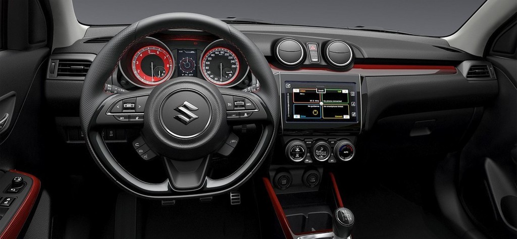 Istočasno so Japonci poskrbeli tudi za serijsko vgradnjo štirih blažilnikov znamke Monroe® ter vgradnjo štirih zavornih diskov, kjer je prvi par prisilno hlajen. Vse skupaj se skriva pod nameščenim setom 17-palčnih koles. Ob primerjavi s predhodnikom se je spremenila tudi medosna razdalja, ker je novi swift sport v tem pogledu daljši za 20 mm, spremenjena pa sta tudi oba koloteka (+ 40 mm ob primerjavi z običajnim swiftom). Poskrbeli so tudi za dodatno 15 milimetrsko zbližanje karoserije z vozno podlago, ker takšen swift pač nima SUV ambicij, namesto tega se bo raje držal cest. Na splošno je novi swift sport sedaj še lažji (-80 kg) ob primerjavi s predhodnikom, posledično pa bo tudi bolj agilen in zmogljiv, boljša pa bo tudi ekonomija (povprečna poraba goriva). Prenovo ob predstavitvi športne verzije je dočakala tudi notranjost potniške kabine, ki je obarvana pretežno športno črno, medtem ko so za poživitev izbrali rdeče obarvane šive in ostale detajle.
