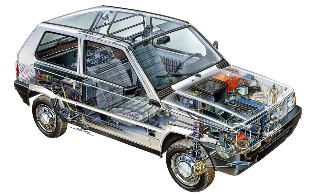 Leta 1992 so Italijani predstavili 2-sedežno (zadnjo sedežno klop so nadomestili s setom akumulatorjev …) električno pando s spredaj vgrajenim električnim pogonskim sklopom, ki je na začetku lahko mobiliziral samo 14 kW pogonske moči. Mala panda ni imela veliko komercialnega uspeha, ker so jo pestile podobne težave (premajhen akcijski doseg (samo 100 km), prevelika masa (+450 kg ob primerjavi z običajno pando) in previsoka prodajna cena …) kot številne današnje električne avtomobile, posledično se zanjo ni odločilo prav veliko kupcev, ker ste za eno striktno električno gnano pando 'Elettra' (masa avtomobila: 1150 kg) lahko odšteli približno 25 milijonov italijanskih lir, za enako vsoto denarja ste takrat lahko dobili tri nove osnovno opremljene in klasično motorizirane pande 750.