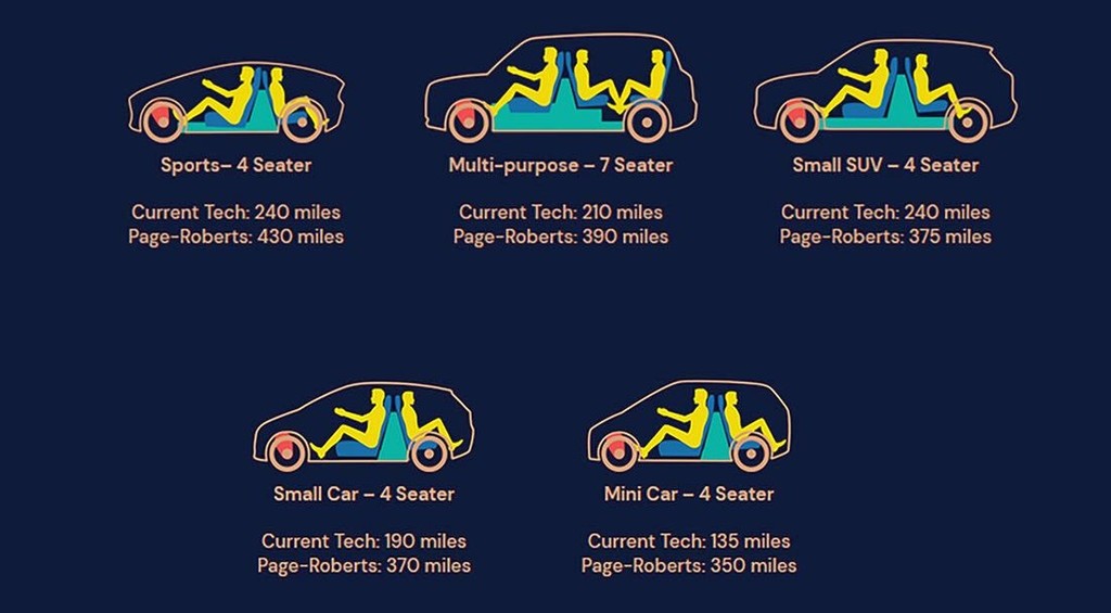 Zato so se Britanci ob snovanju njihovega prototipnega avtomobila odločili za povsem drugačno rešitev glede vgradnje akumulatorjev, ker so v njihovem prototipu nameščeni na sredini potniške kabine med parom prednjih in zadnjih sedežev, ki sta posledično obrnjena proti zadku vozila. Na ta način je avtomobil lahko bolj zbližan z vozno podlago, poleg tega je lahko tudi nižji, vse to pa zelo pozitivno vpliva na aerodinamiko vozila, s tem pa tudi na akcijski doseg s samo enim polnjenjem akumulatorjev. Ob tem so predstavili tudi nekaj številk, ki potrjujejo smiselnost takšnega pristopa.