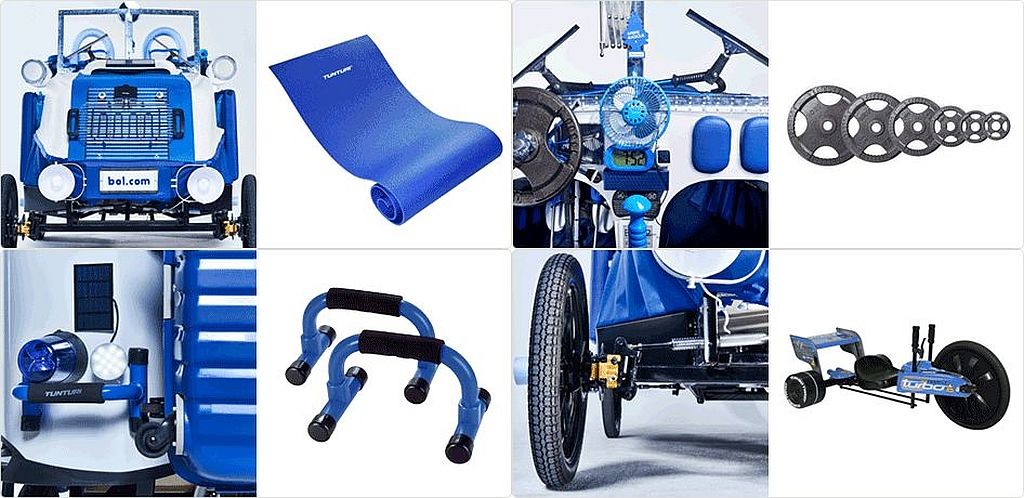 Tako smo dobili resnično kompaktno in lahko (dolžina: 270 cm, širina: 147 cm, masa avtomobila: 322 kg) električno vozilo, ki je sestavljeno iz 223 gospodinjskih in športnih artiklov, ki jih lahko kupite tudi posamično na spletni strani podjetja Bol.com. Za nastanek tega simpatičnega unikata, ki lahko 'drvi' po mestu z največ 20 km/h, so nizozemski rokodelci potrebovali približno 420 delovnih ur.