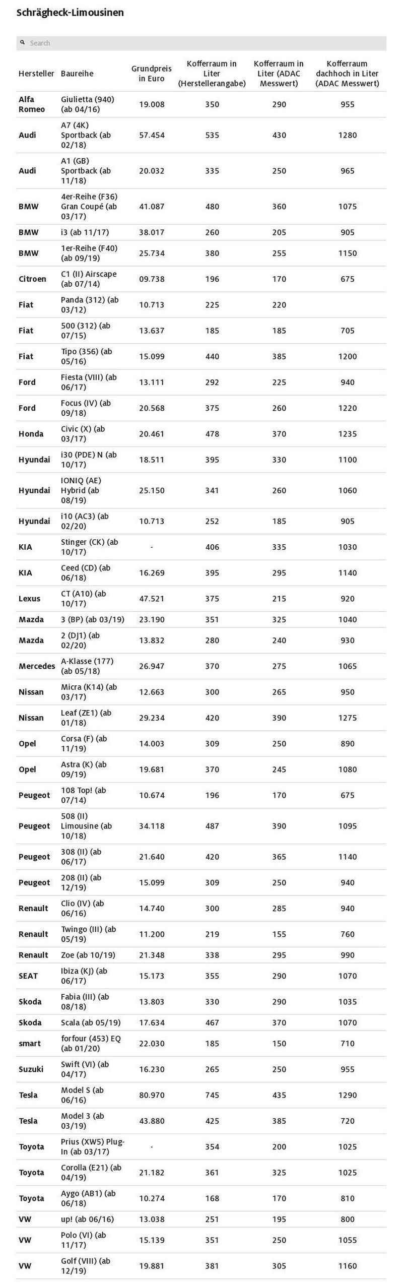 Sedaj je pred nami nov dokaz 'nategovanja' potrošnikov, ker so Nemci ugotovili, da pri številnih aktualnih modelih (Nemci so premerili 150 serijskih modelov …) ne smete verjeti številkam glede prostornine prtljažnika, ker so večinoma napihnjene. To je še posebej pogosto pri bolj družinsko orientiranih avtomobilih (SUV, karavan, potniški dostavnik, enoprostorec in 5 vratna kombilimuzina), ker želijo proizvajalci z napihnjenimi številkami glede razpoložljivega volumna prtljažnega prostora prepričati kupce v neverjetno uporabnost njihovih izdelkov, sploh pa tiste, ki jim je velikost prtljažnega prostora zelo pomembna. Ob tem so ugotovili, da je ta praksa zavajanja kupcev zelo pogosta pri SUV vozilih in karavanih iz višjih cenovnih razredov, medtem ko se proizvajalci cenejših vozil praviloma držijo resnice. Lep primer tega je dacia duster, kjer vam proizvajalec obljublja osnovnih 413 litrov prtljažnega prostora. Po nemških meritvah so se Romuni zlagali samo za 3 litre (izmerjenih 410 litrov …).