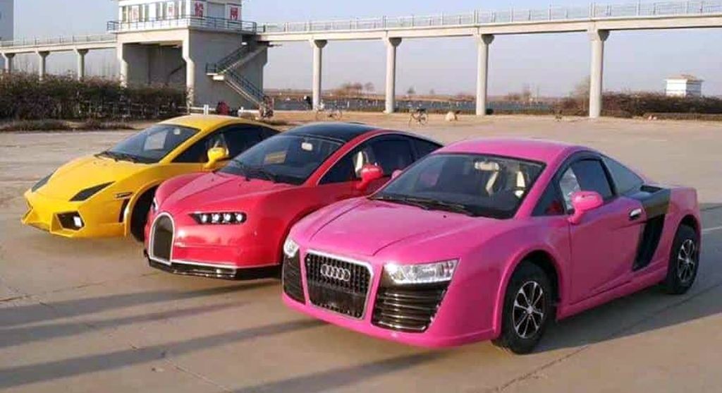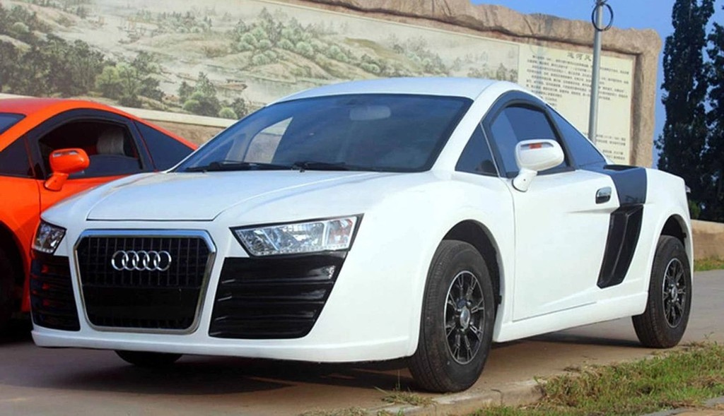 Trenutno Kitajci kupcem ponujajo tri različno oblikovane izdelke (kopija audija R8, kopija lamborghinija gallardo in kopija bugattija chiron (dolžina: 410 cm, širina: 180 cm, višina: 143 cm)), zasnovane na njihovi interni tehnološki platformi, ki vključuje tudi 'uniformirano' notranjost potniške kabine, kjer se 'v sili' lahko zberejo največ štirje ljudje, seveda ob predpostavki, da se zadnja potnika odpovesta udobju. Poleg običajne 'IT krame' (7-palčni zaslon na dotik in vgrajeni MP5 predvajalnik …) lahko v takšnem avtomobilu najdete tudi nenavadno varnostno rešitev v obliki ogromnega rdečega gumba za izklop vozila v sili, ki je že samo po sebi zelo varno, ker znaša njegova največja hitrost samo 50 km/h (zakonska omejitev), čeprav lahko z njim dosežete 'celo' 65 km/h.