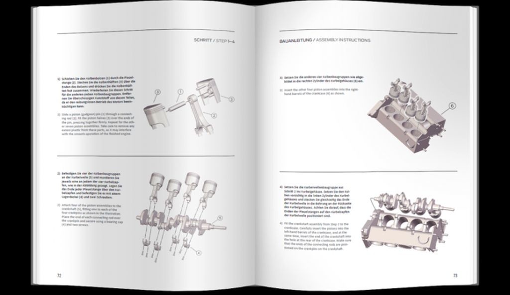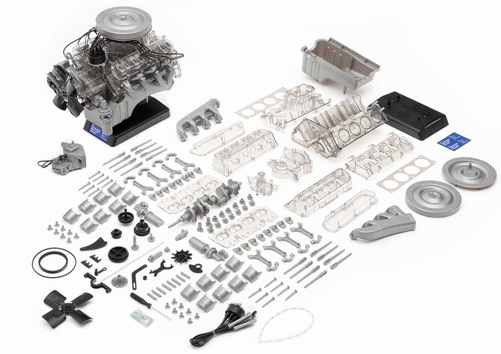 Lepila ne boste potrebovali, večino časa boste uporabljali izvijač, veliko sestavnih delov motorja je možno sestaviti tudi po načelu 'Snap-tite'. Med posebnostmi omenjajo veliko transparentnih sestavnih delov, ki bodo opazovalcu posledično lahko ponudile dober vpogled v samo delovanje motorja, kjer boste našli tudi delujoče odmične gredi. Istočasno bo s podporo LED žarnic simulirano tudi delovanje vžigalnih svečk in razdelilnika vžiga, seveda se bo ob vsem tem direndaju premikala tudi hladilna vetrnica. Z vgradnjo zvočnega modema so poskrbeli tudi za primerno zvočno kuliso.