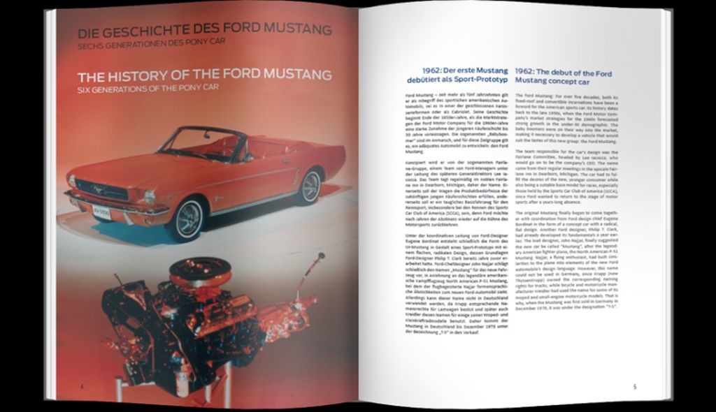 Kupec bo prejel tudi primeren motorni podstavek ter posebno knjigo (104 strani) s številnimi zgodovinsko pomembnimi informacijami in fotografijami o razvoju in implementaciji tega legendarnega pogonskega motorja in modela mustang.