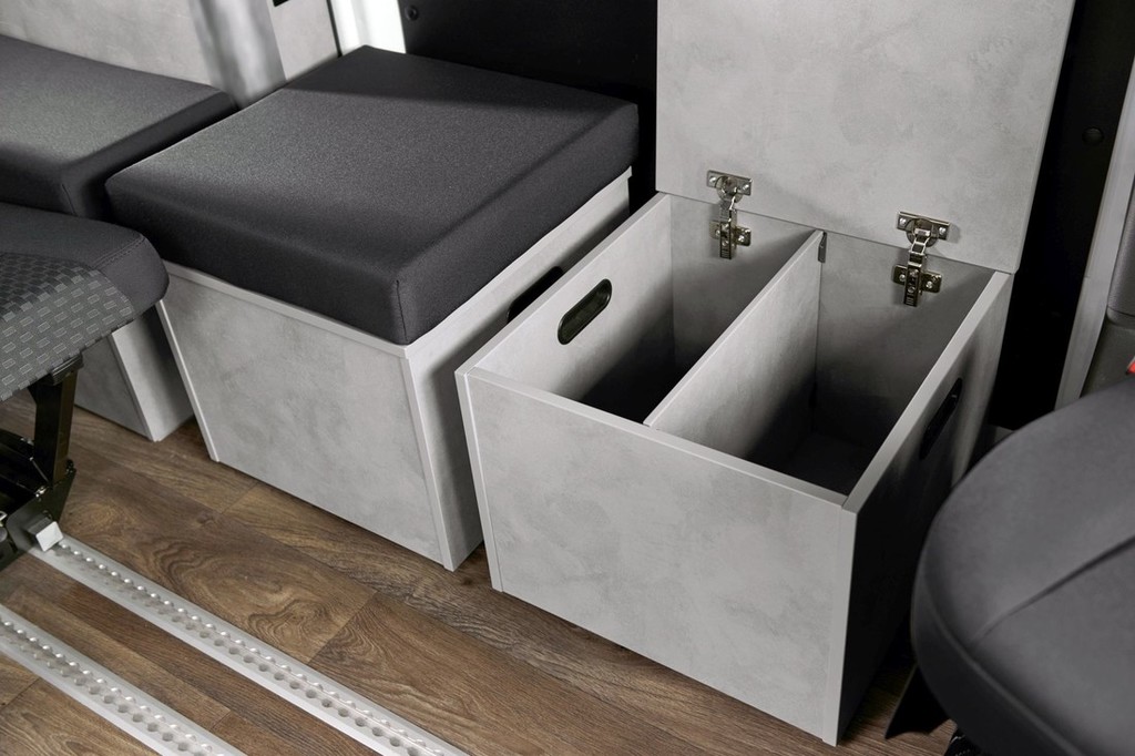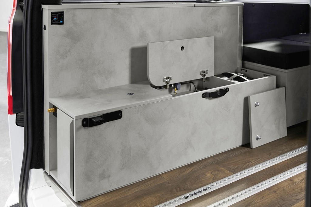 Poleg tega bo kupec vedno prejel tudi premično in po višini nastavljivo trinožno mizico, ki jo lahko uporablja tudi zunaj, ter nekaj premičnih škatel za shranjevanje različnih dobrin, ki jih lahko uporabite kot sedišče. Na voznikovi strani v predelu zadka pa uporabnik lahko najde posodo s pitno vodo in plinsko jeklenko, ki je povezana z zunaj nameščenim kuhalnikom. Tam se nahaja tudi priključek za priklop in zunanjo uporabo tuša. Prvi skupni sad novodobnega sodelovanja med znamkama Ford in Dethleffs bo nemškim kupcem na voljo v letošnjem aprilu.