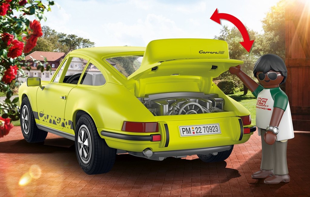 Za odštetih 70 evrov (približno) boste prejeli pomanjšano različico (približno merilo: 1:16) legendarnega Porsche 911 carrera RS 2.7 T (dolžina: 4147 mm, širina: 1652 mm, višina: 1320 mm, medosna razdalja: 2272 mm, masa avtomobila: 1110 kg), ki je po mnenju številnih ljubiteljev in poznavalcev tega kultnega kupeja še vedno eden izmed najbolj čislanih in želenih predstavnikov modela 911, predvsem zaradi zmagovite kombinacije (manjša masa + več pogonske moči), ki mu točno 50 let po prvi predstavitvi še vedno zagotavlja odlične vozne lastnosti (največja hitrost: 240 km/h, pospeševanje (0-100 km/h): 6,3 sekunde, povprečna poraba (l/100 km): 15). Istočasno govorimo o serijski različici modela 911, ki ni parkirana na vsakem mestnem vogalu, ker je v roku enega leta (1972-1973) proizvodnje nastalo samo 1580 (1308 izdelanih 'civilnih' primerkov je okrašenih z modelno oznako T ('Touring')) tega posebnega porscheja (6 valjev, 2,7 litra, 210 KM (154 kW) pri 6300 vrt./min. ter 255 Nm motornega navora pri 5100 vrt./min.), posledično je lastnik takšnega avtomobila vedno deležen velikega odmerka individualnosti. Vse to pa se odraža tudi pri prodajnih cenah, ker boste v današnjem času za odlično ohranjen primerek različice carrera RS 2.7 T odšteli približno 600.000 evrov …