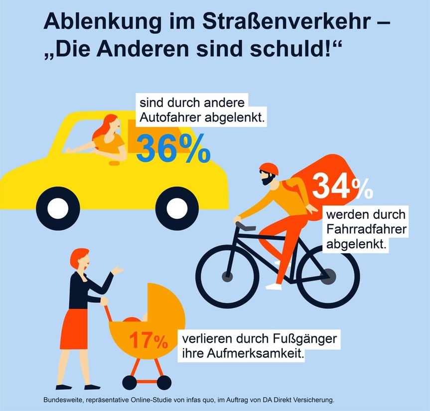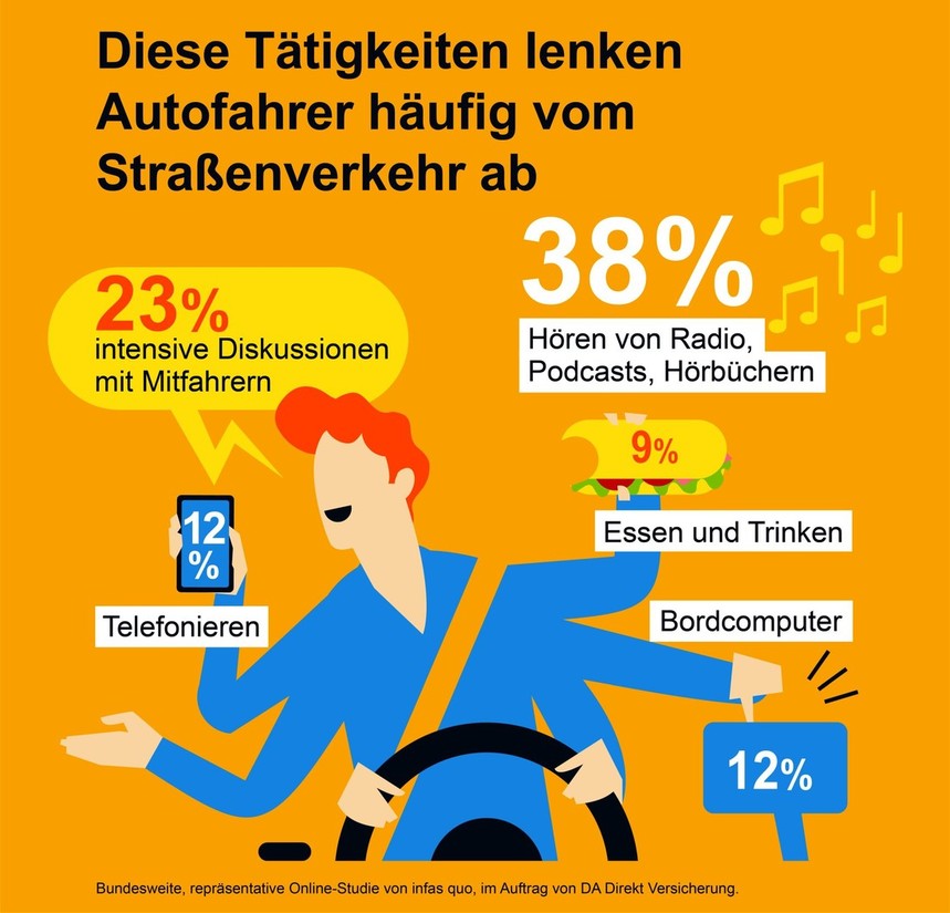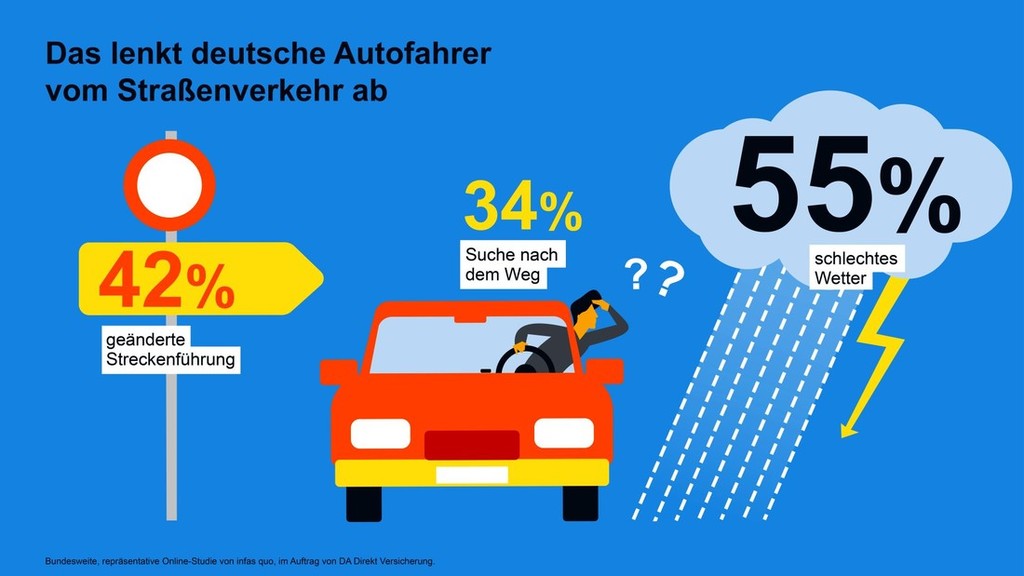 Na začetku letošnjega novembra so pri nemški zavarovalnici DA Direkt Versicherung (Zurich Gruppe) ob pomoči zaposlenih v inštitutu infas quo izvedli reprezentativno anketo v kateri je tokrat sodelovalo točno 2038 polnoletnih Nemcev in Nemk. Ob tem so raziskovalce zanimali predvsem razlogi, ki lahko pripeljejo do odvračanja voznike pozornosti in pa mnenje sodelujočih o zanesljivosti delovanja raznih asistenčnih sistemov, ki jih marketing in neresni novinarji prikazujejo kot nekaj nujno potrebnega za varnost potnikov v avtomobilih. Razlog za samo izvedbo študije pa razkriva podatek, ki pravi, da je za odvračanje voznikove pozornosti krivo za vsako četrto (27 %) prometno nesrečo na nemških cestah.