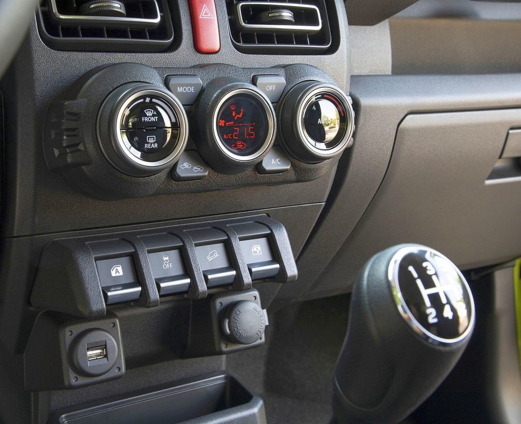 Prenova modela je prinesla tudi izboljšane 4x4 karakteristike modela jimny. Klasični vklop 4x4 pogona ob pomoči električnega stikala so Japonci nadomestili z rešitvijo v obliki klasične dodatne ročice, ker je ta rešitev bolj po okusu večine dosedanjih uporabnikov tega modela, sam vklop ali izklop 4x4 pogona je možen samo do hitrosti 100 km/h. Pritaknjeni ročni 5-stopenjski ročni menjalnik se lahko pohvali tudi s terensko orientirano nastavitvijo menjalnih prestavnih razmerij, tu pa je tudi dvojni odmerek elektronskih zapor diferencialov. Tudi notranjost potniške kabine je oblikovana predvsem v želji po povečani praktičnosti in funkcionalnosti, posledično je armaturna plošča izredno prečiščena in enostavna, medtem ko sredinsko konzolo zaznamujejo štiri nekoliko večja stikala (eno skrbi za izklop ali vklop ESP sistema, drugo uteleša funkcijo 'Downhill' (kontroliran počasni spust), dve skrbita za odpiranje bočnih kabinskih stekel), ki jih bo voznik lahko našel tudi takrat, ko ne bo odmaknil pogleda s ceste. Temu smo včasih rekli dodatni element pasivne varnosti, danes bi nekateri to označili kot siromašno opremljenost. Na krovu vsakega jimnyja boste našli tudi pasivni ohranjevalnik voznega pasu, sistem za samodejno zaviranje v sili ter opozorilnik, ki bo bdel nad psihofizičnimi (utrujenost …) sposobnostmi lastnika.