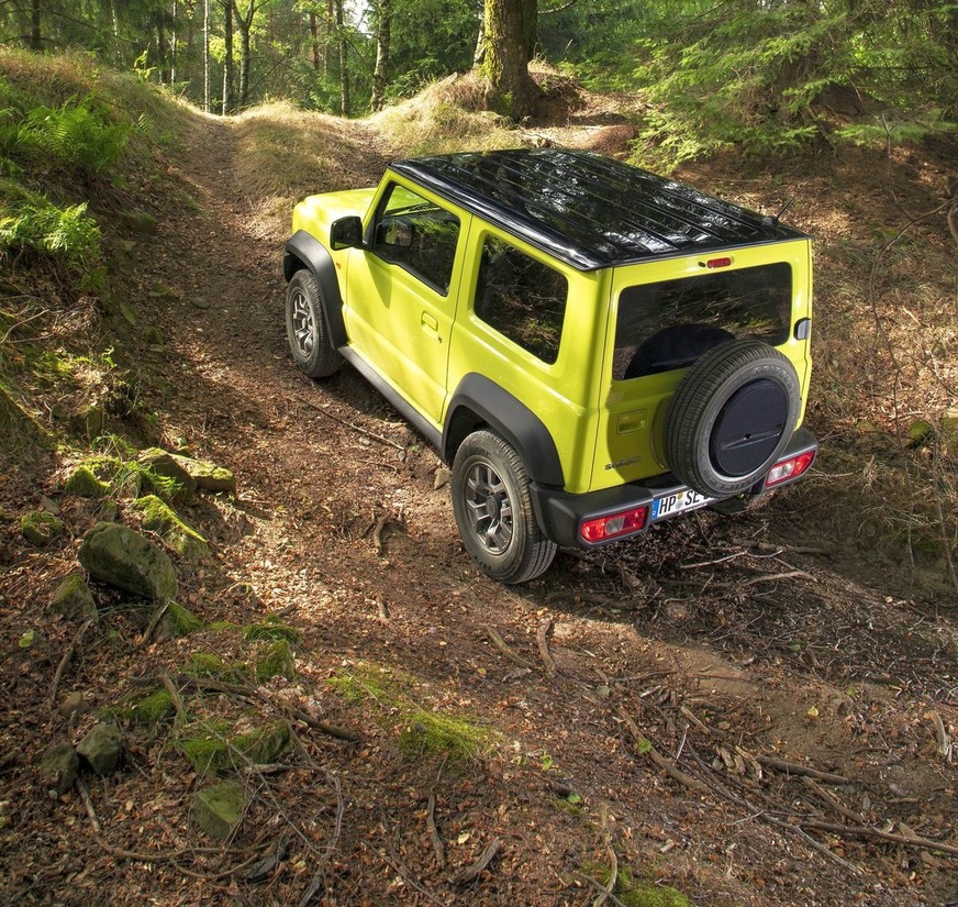 Predstavniki pete generacije modela jimny (dolžina: 365 cm, širina: 165 cm, višina: 172 cm, medosna razdalja: 225 cm, masa avtomobila: 1090 kg, uporabna nosilnost: 345 kg, oddaljenost karoserije od vozne podlage: 21 cm, največja dovoljena masa s priklopnikom: 1300 kg, obračalni krog: 9,8 metra, pnevmatike: 195/80 R15) so malenkostno krajši kot aktualni jimny JB, istočasno so tudi nekoliko širši in višji. Verjetno se sprašujete, zakaj kupcem ne ponudijo medijsko opevane 5-vratne različice tega modela. Razlog je enostaven. 5-vratne verzije terenskih vozil se sicer lahko pohvalijo z večjo praktičnostjo ob vsakodnevnih opravkih, ob vožnjah izven utrjenih površin pa po navadi hitreje nasedejo s trebuhom kot 3-vratne različice s krajšo medosno razdaljo, ki so posledično bolje pripravljene na spopad z zahtevnim terenom. Prednost 3-vratnih avtomobilov leži tudi v povečani pasivni varnosti, ker so njihova bočna vrata nekoliko daljša, posledično ima voznik zelo dober bočni pregled iz vozila, pri 5-vratnih vozilih mu dober pregled lahko omejita prednja B karoserijska stebrička. Poleg tega daljša vrata pri 3-vratnih modelih ponujajo tudi lažji vstop in izstop za voznika in prednjega sopotnika, razen seveda na nabito polnih parkiriščih, kjer bočnih vrat vedno ni mogoče povsem odpreti do konca.