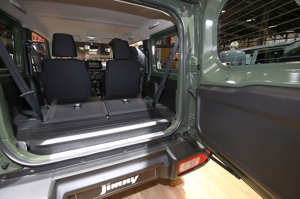 Ko smo že pri vratih, uporabnike bo sigurno razveselila informacija o tem, da so tretja, prtljažna vrata pri novem jimnyju za približno 4 centimetre širša kot pri aktualnem jimnyju, zelo podobna (85 litrov) pri obeh pa je razpoložljiva prostornina prtljažnika v primeru, ko jimny prevaža 4 ljudi. Ob nakupu različice s paketom opreme Comfort+ bo kupec deležen vgradnje preklopnega para zadnjih sedežev, posledično se lahko tako opremljen jimny pohvali s skoraj ravnim dnom v predelu zadka in izboljšano sposobnostjo prevažanja tovora, ker ima uporabnik v tem primeru na voljo prtljažnik s 830 litri prostornine. Novost je tudi novi pogonski sklop v obliki 1,5-litrskega klasičnega bencinskega štirivaljnika, ki bo zadovoljil vse ljubitelje atmosferskih motorjev. Motor je tipični predstavnik današnjih 16-ventilskih bencinskih motorjev, ker ljubi visoke motorne vrtljaje, temu primeren je tudi izplen motornega navora (130 Nm pri 4000 vrt./min.), sam motor pa lahko mobilizira 75 kW (102 KM) pogonske moči pri športnih 6000 vrtljajih v minuti. Tako motoriziran jimny bo lahko drvel z največ 145 km/h, podatkov o pospeševanju pa sploh ni na voljo, ker so za lastnike pravih terenskih vozil povsem nepomembni. Ob doplačilu si bo kupec lahko omislil tudi samodejni menjalnik.