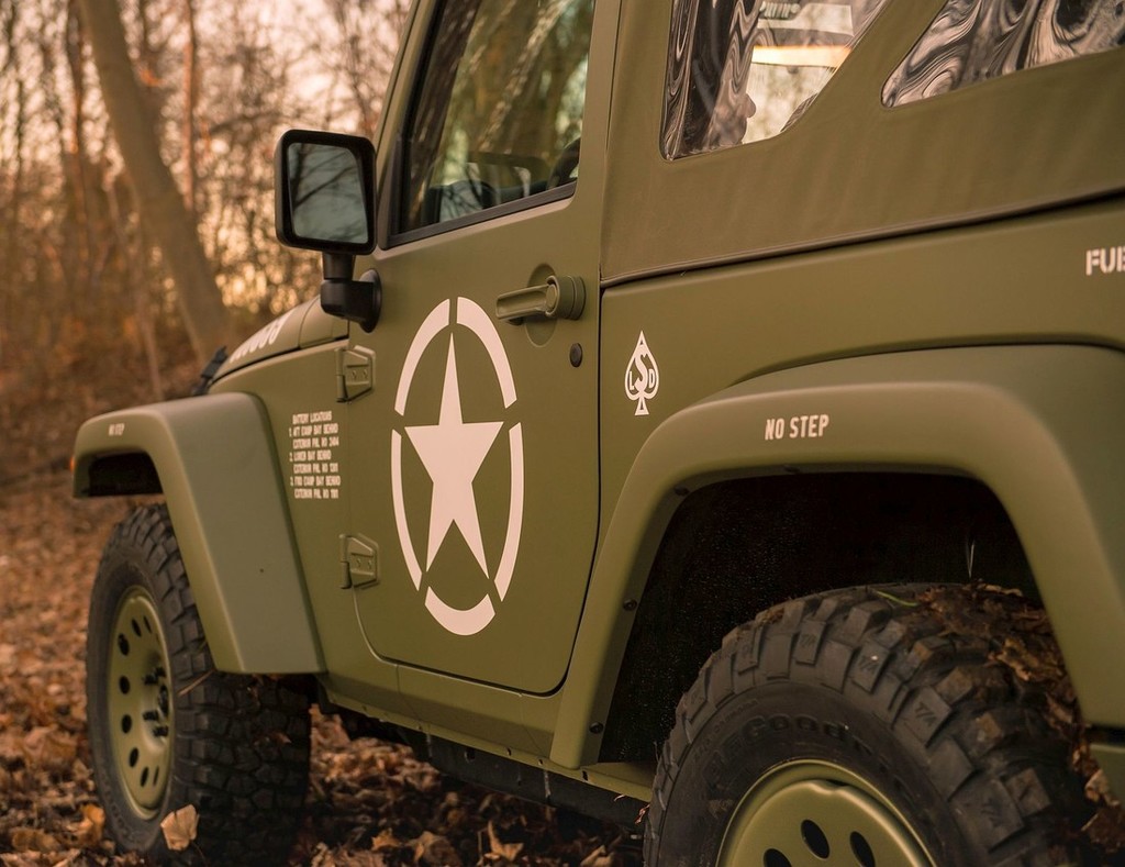 Ob tem omenjajo predvsem drugačna, veliko bolj robustno izvedena odbijača (prednji ima vgrajen vitel), novo sedežno oblazinjenje ter drugačno platneno streho, zamenjali pa bodo tudi kolesa, ker se vojaško orientirani wrangler lahko pohvali s petimi 17-palčnimi jeklenimi platišči ter 5-delnim setom terensko orientiranih pnevmatik. Zaradi tega so morali Nemci ob izdelavi primerka na fotografijah poskrbeti tudi za močnejši nosilec rezervnega kolesa na zadku, ki nima statusa zasilnega kolesa. 'Bojno razpoloženje' takšnega wranglerja pa podkrepi tudi set nalepljenih oznak ameriške armade.
