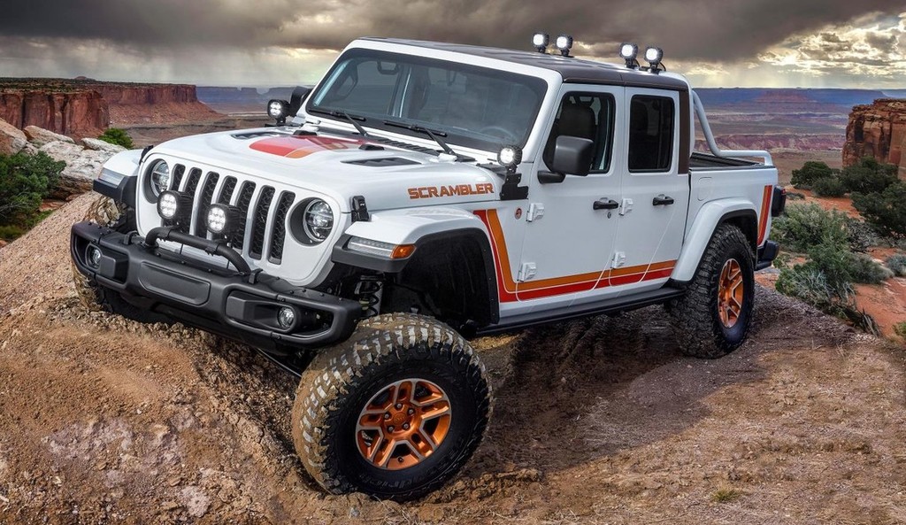 Takšen prototipni jeep obuja spomin na serijski jeep CJ-8 'Scrambler' (1981-1986), ki je v osemdesetih letih prejšnjega stoletja privabil približno 28.000 kupcev. Tokratni 'Scrambler' se za razliko od samo 2-vratnega originala predstavlja v verziji s štirimi bočnimi vrati, po originalu pa je prevzeta tudi shema obarvanosti karoserije, ki bistveno ne odstopa od podobe serijskega gladiatorja, kjer si kupec lahko omisli več kot 200 dodatnih sestavnih delov in opreme iz obsežnega Mopar programa.