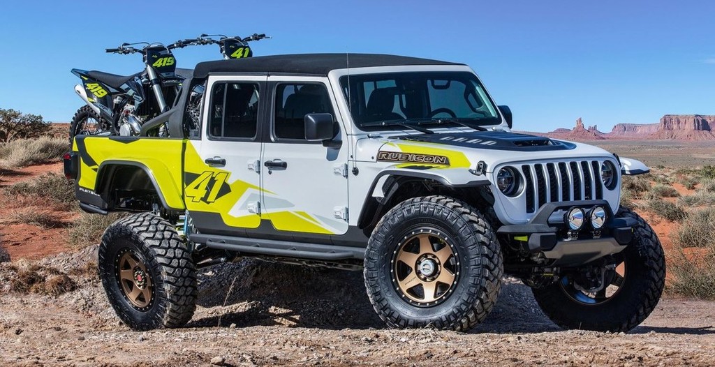 sestavnih delov ter tudi rahle oblikovne prenove. Ob tem omenjajo predvsem menjavo maske hladilnika, ki je pri prototipu izdelana iz ogljikovih vlaken ter vgradnjo paketa modernih LED svetil spredaj in zadaj. Povsem nov je tudi tovorni keson iz aluminija, poleg tega so za 3,5-palca znižali vetrobranski okvir in vgradili še par sodobnih gladiatorjevih odbijačev, ki jih je prispevala različica rubicon. Transformacija je prinesla tudi spremembe pri podvozju (novi pogonski osi in za