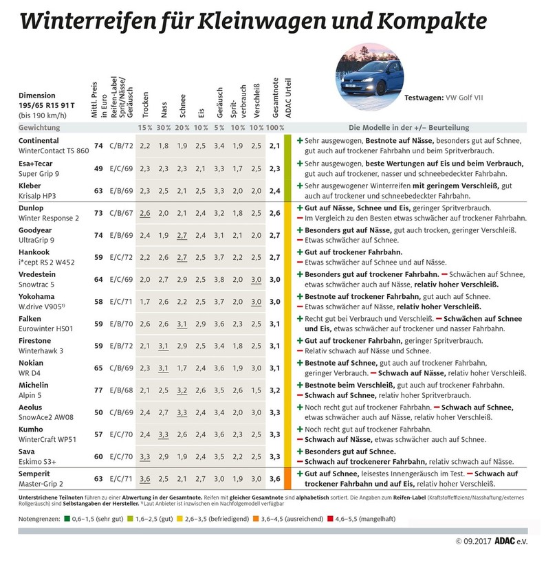 Predstavniki nemškega kluba ADAC so v teh dneh objavili poročilo z zadnjega, obsežnega testa zimskih pnevmatik, na katerem so Nemci tokrat testirali 32 različnih pnevmatik v dveh različnih velikostih (195/65 R15 in 215/65 R16). Letošnji test je postregel tudi z nekaj presenečenji.
