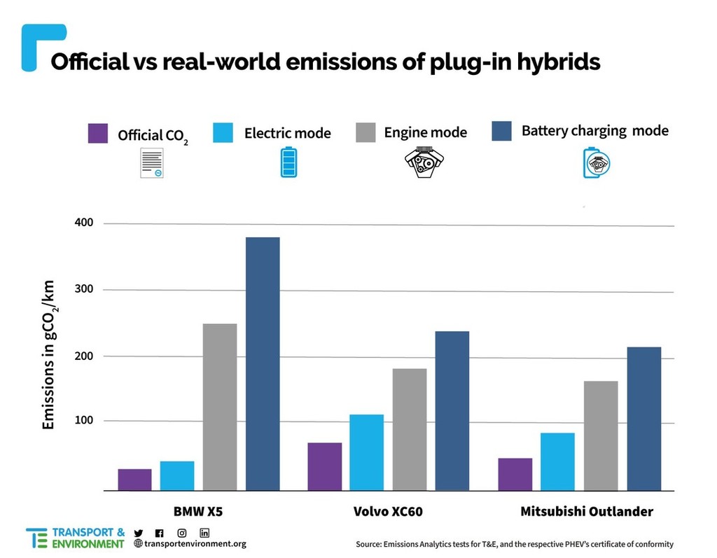 Pri evropski organizaciji Transport & Environment’s (T&E) so včeraj objavili poročilo o škodljivem vplivu modnih priključnih hibridov na okolje, ker gre v primeru teh vozil za lažne okoljevarstvenike, ki v realnih pogojih obratovanja ustvarijo precej več CO2 emisij kot jih naznanja avtomobilski marketing.