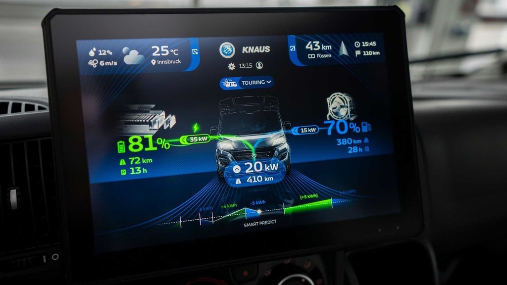 Rezultat njihovega razmišljanja, ki je zasnovan na osnovi enega izmed njihovih serijskih izdelkov (KNAUS Van Ti 650 MEG Vansation), so v teh dneh predstavili na salonu v Düsseldorfu, vendar z nekoliko mešanimi občutki, ker so se Nemci ob razvoju novega električno gnanega avtodoma znašli pred veliko težavo, ki je povezana predvsem s preveliko neto maso počitniškega vozila in posledično izredno nizko uporabno nosilnostjo takšnega izdelka. Zato so v nemškem cehovskem združenju CIVD (Caravaning Industrieverband Deutschland) že pozvali uradnike v Bruslju, da naj spremenijo zakonsko določen evropski predpis glede vožnje gospodarskih in počitniških vozil z največ 3,5 tone dovoljene skupne mase. Nemški proizvajalci si želijo, da bi uporabniki z B kategorijo vozniškega izpita lahko po novem upravljali tudi vozila z največ 4,25 tone dovoljene skupne mase. V nasprotnem primeru se bodo vozniki nekaterih, že zdaj ogromnih SUV vozil ter bodočih električno gnanih avtodomov morali odločiti za opravljanje izpita iz kategorije C1 …