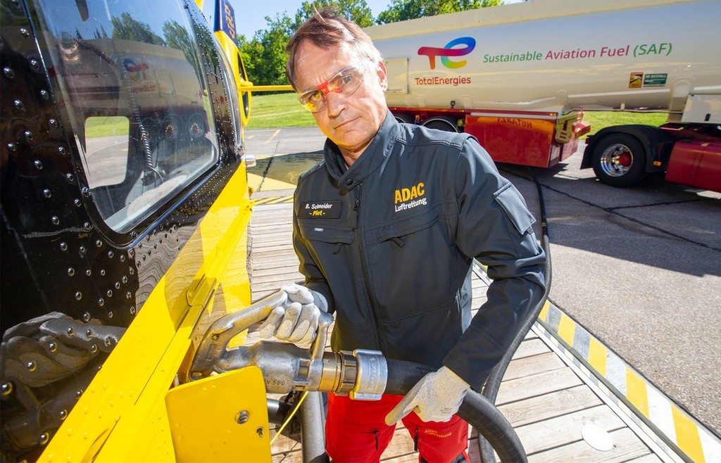 V Nemčiji se je v teh dneh odvil prvi uspešni polet reševalnega helikopterja (airbus H145) kluba ADAC, katerega pogonski sklop (proizvajalec: Safran Helicopter Engines) je poganjal novi trajnostni biokerozin z imenom SAF (Sustainable Aviation Fuel), ki nastaja v rafinerijah naftnega giganta TotalEnergies, ker želijo Francozi na ta način pospešiti dekarbonizacijo letalskega prometa, ki ima pomembno vlogo pri nastajanju škodljivih emisij v našem ozračju.